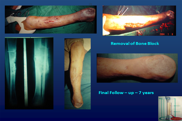 After failure of conventional methods we took this patient for lateral distraction of spitted tibia for neo histogenesis.