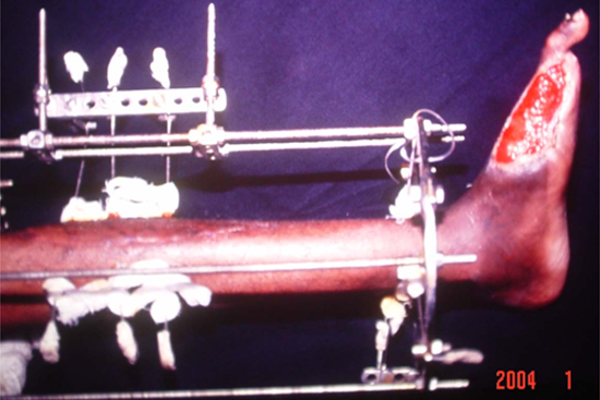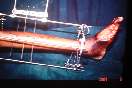 1. Frame fixation done for lateral distraction of spitted tibia.(FIG 3)